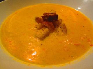 Paprikasuppe mit Knoblauchcroutons
