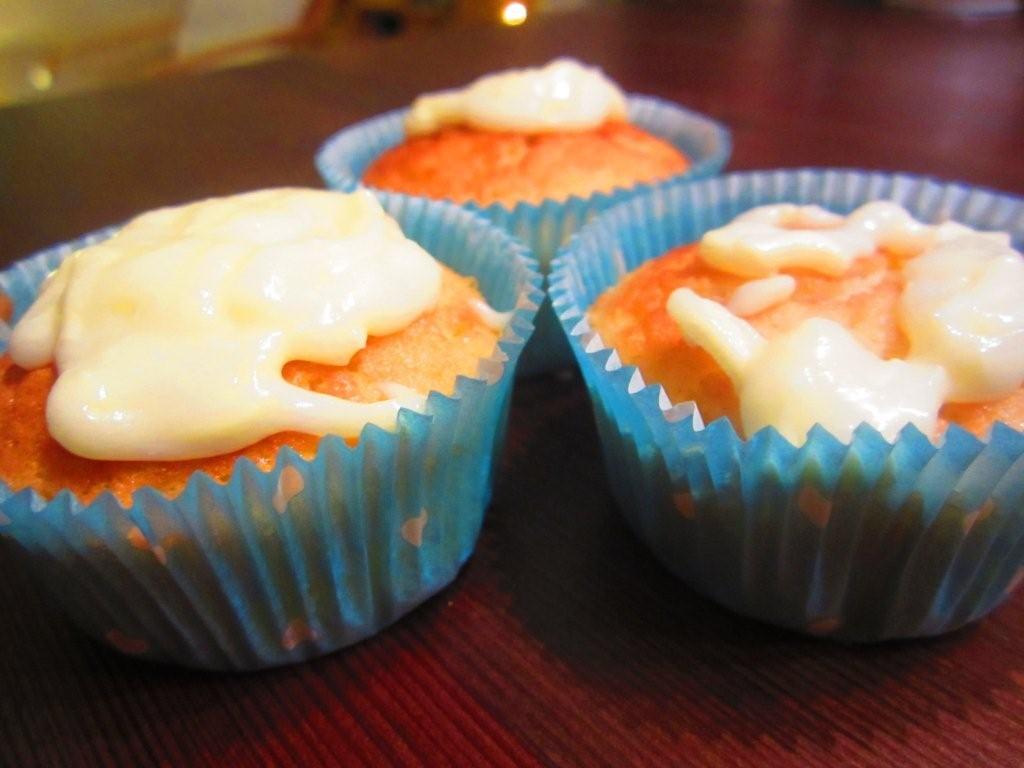 25 g weiche Butter mit 50 g Doppelrahmfrischkäse und 250g Puderzucker und evtl. 1 TL Milch mischen, bis es schön fluffig geworden ist. Auf die Cupcakes geben…in hübsch.