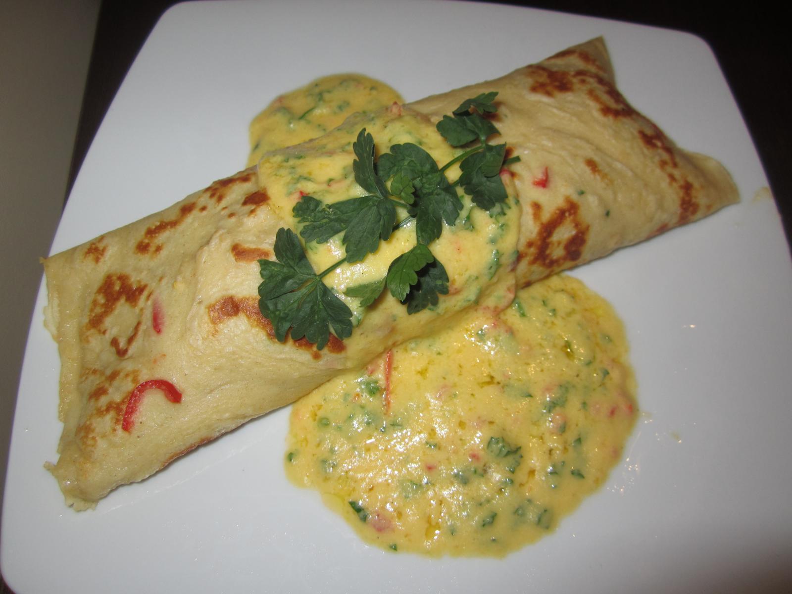Spargel mit Chili-Vanille-Hollandaise und Pfannkuchen: