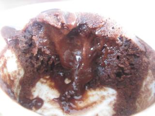 Ich habe 70 %ige Zartbitterschoki verwendet und muss sagen, dass für meine Verhältnisse – und ich esse gern Zartbitter, eigentlich am liebsten, dass ganze etwas zu bitter geworden ist. Nächstes Mal würde ich entweder einen Teil Vollmilch nehmen oder die Zuckermenge etwas erhöhen. Aber ansonsten war das Rezept perfekt und der Kern sehr schön noch flüssig, es blubberte regelrecht oben raus, als ich es aus dem Ofen nahm.