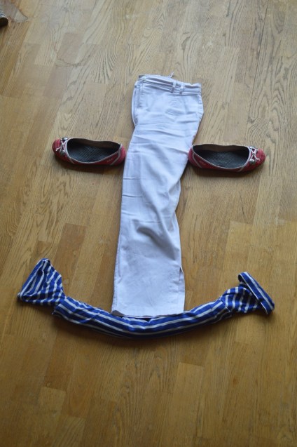 | What I wore today: maritimer Look – blaugestreiftes Shirt, weiße Hose, rote Schuhe AHOI! |