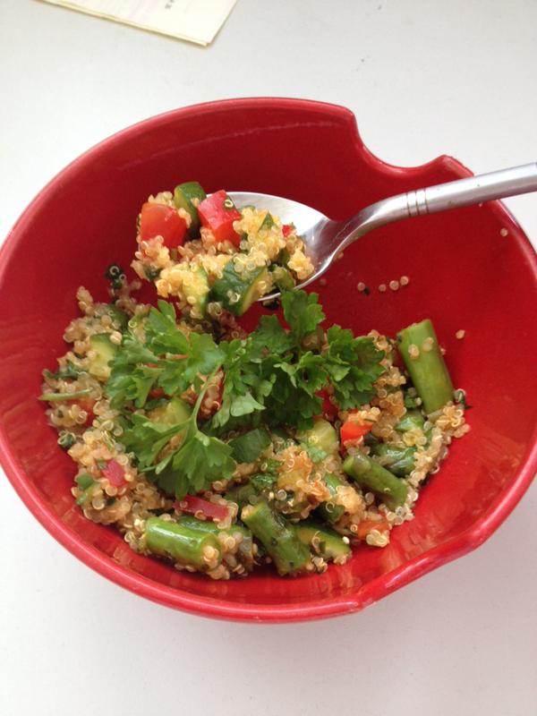 echt mal. ich liebe quinoa in allen erdenklichen variationen. werd mir morgen gleich noch ein pfund spargel holen und das hier ausprobieren. jammi.