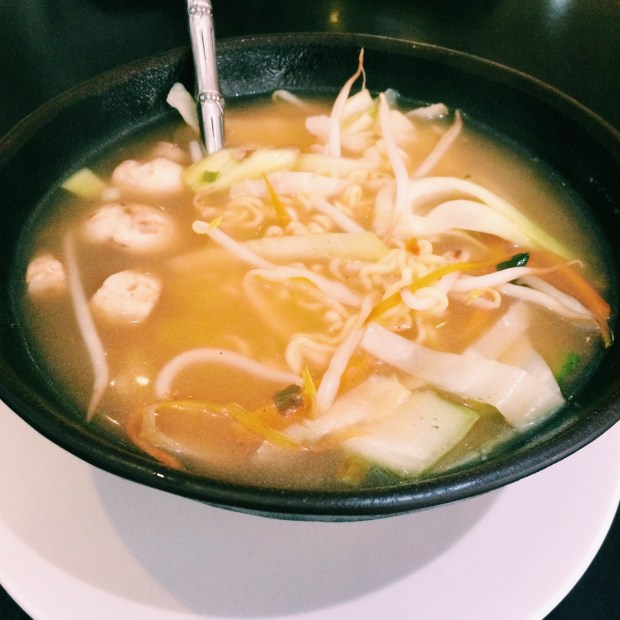 Erfreulich ist, dass die vegetarische Ramen keinen Tofu enthält. Der ist mir nämlich immer zu labberig.