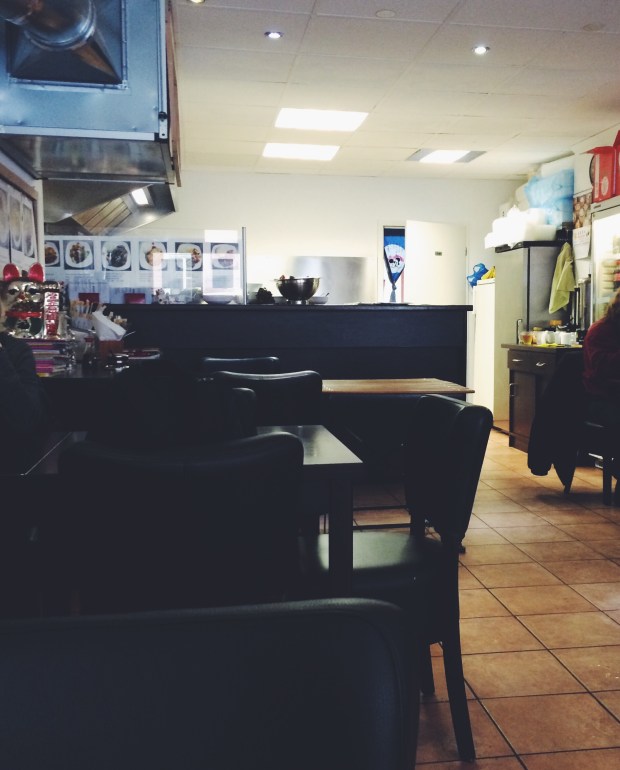 Das Ambiente ist eher nicht so geeignet für ein romantisches Dinner zu zweit, sondern eher Imbiss-mäßig. Aber das ist ok für mittags.