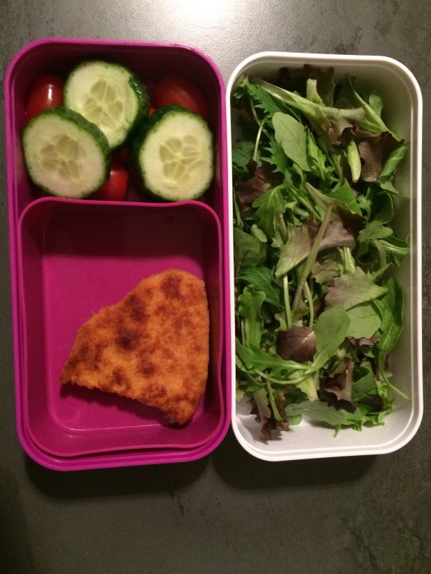 Eine Box am 5:2 Tag: Salat und ein halbes vegetarisches Schnitzel