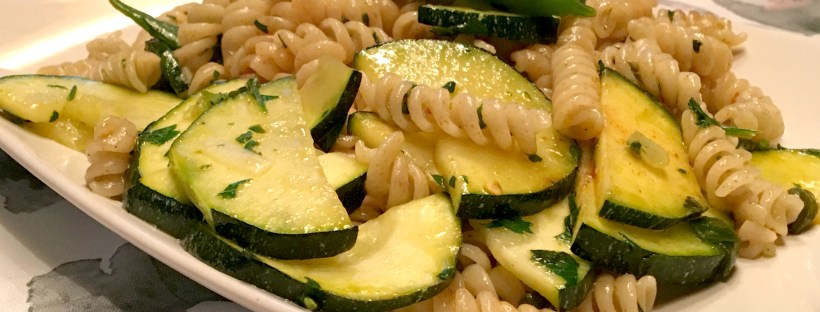 Die Nudeln abgießen, dabei 2-3 EL vom Nudelwasser aufheben. Dieses mit dem Zitronensaft vermengen und mit der gehackten Petersilie zu den Zucchini geben. Die Nudeln unterrühren und fertig ist dieses frische Blitzpasta-Gericht. Und der Berg Zucchini ist wieder etwas weniger geworden 😉