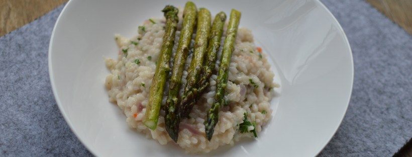 Risotto geht sowieso immer. Mit Spargel kombiniert ergibt es ein schönes Frühlingsgericht, auch wenn das Wetter gerade mal wieder eine Pause einlegt.