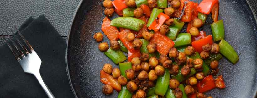 Das erste Rezept des Jahres 2020 ist eine Kichererbsenpfanne, die aus Kichererbsen, Knackerbsen und Paprika besteht.