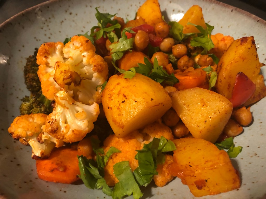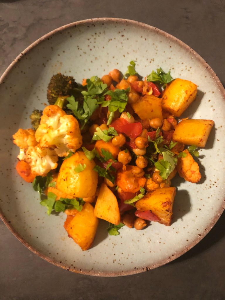 Vorher lasse ich euch aber noch ein Rezept für ein super leckeres, schnelles Ofengemüse da, das ordentlich bums hat. Oder auch nicht – je nachdem, wieviel Gewürz ihr halt so nehmt. Was ihr an Gemüse nehmt, ist auch völlig eurer Fantasie überlassen, das macht das Gericht natürlich wahnsinnig vielseitig.