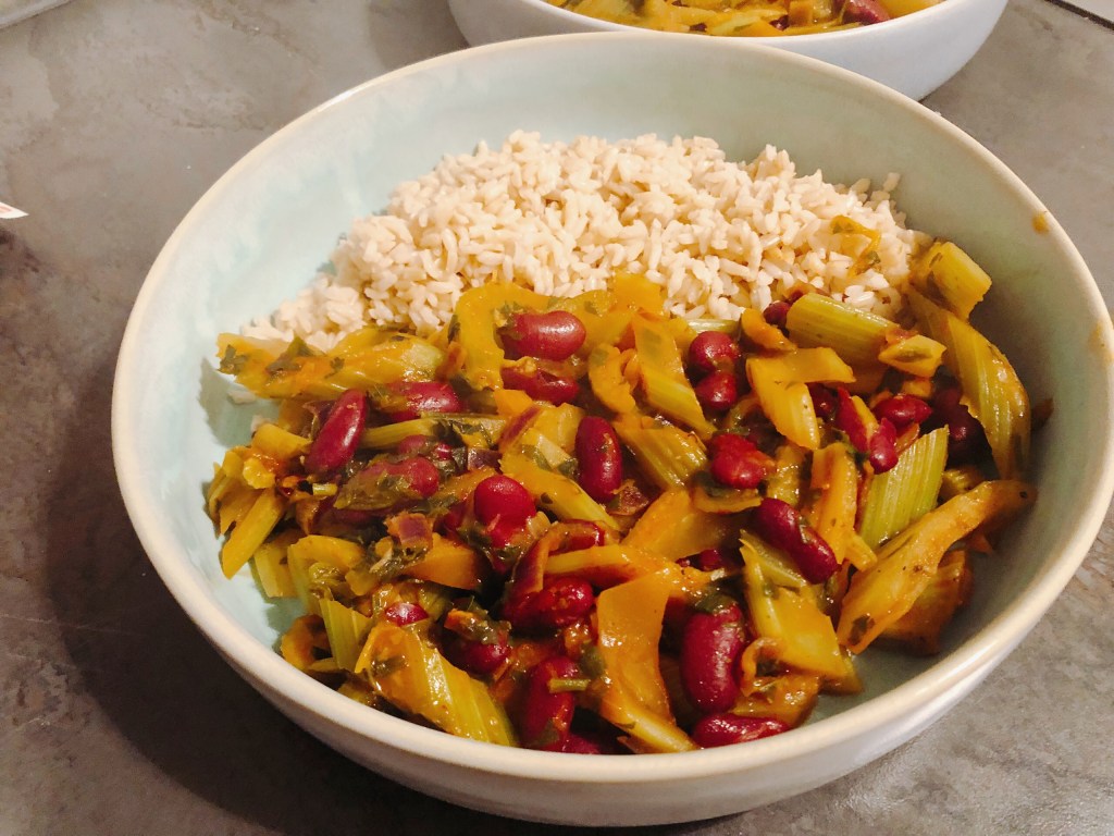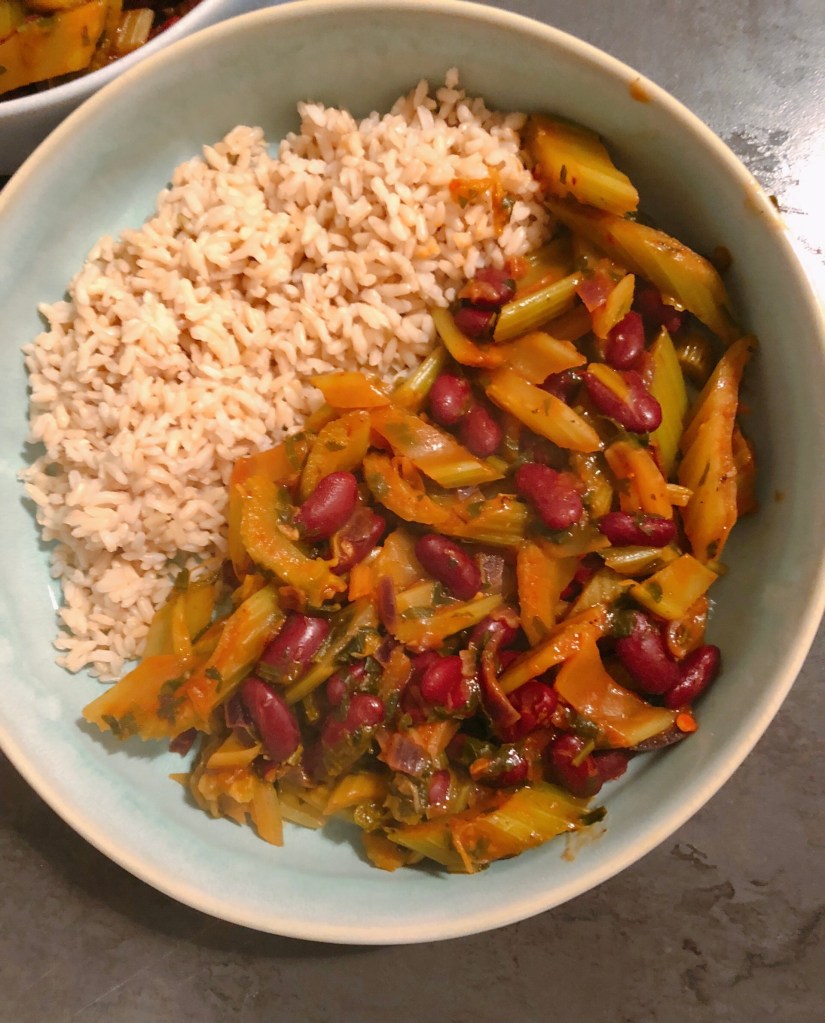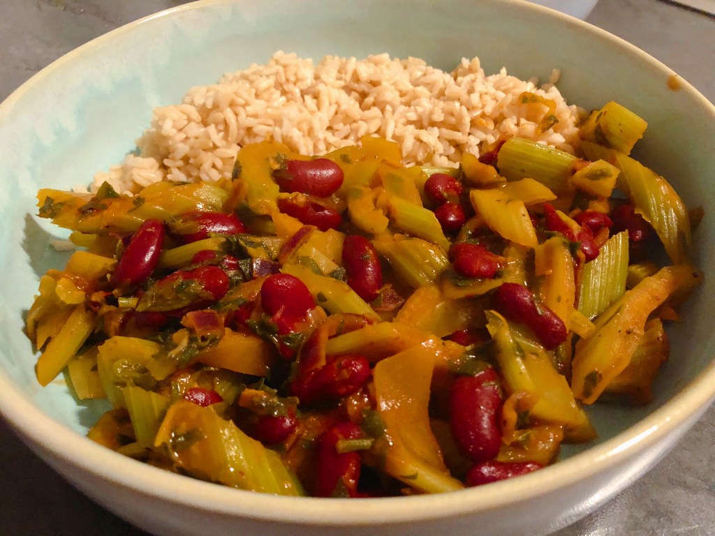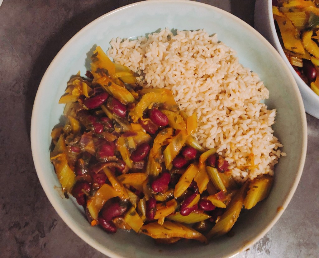 Die persische Variante ist eigentlich mit Fleisch, oft mit Lamm, aber ich habe einfach einen Dose Kidneybohnen statt dem Fleisch zugefügt – denn die hatte ich noch da und ich hatte mir kürzlich eine kleine „Aufbrauchchallenge“ gesetzt, um mal die Vorräte etwas zu reduzieren, die da schon länger im Schrank schlummerten.