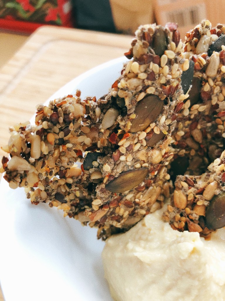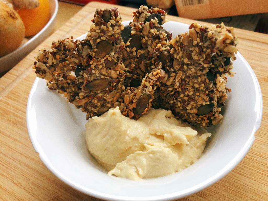 Ein Gedanke zu “Snackidee – selbstgemachte Saatencracker mit cremigem Hummus”