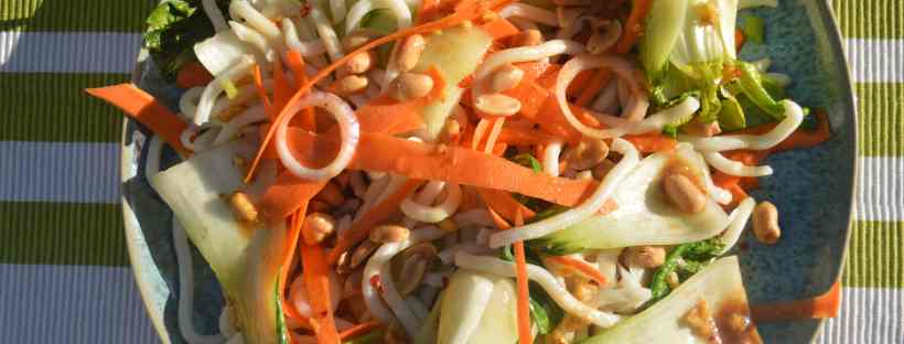 Lauwarme Udonnudel-Schale mit Pak Choi und Ingwerdressing