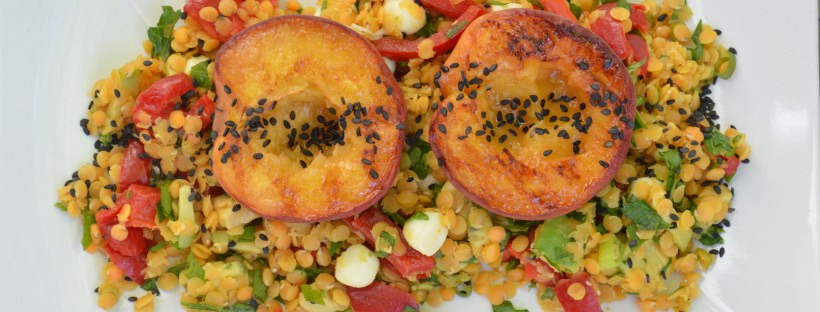 Linsensalat mit gegrilltem Pfirsich