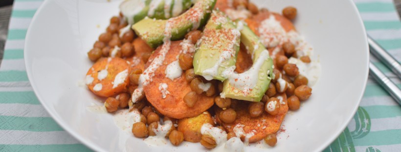 Dinner for one: Süßkartoffel Kichererbsen Bowl mit Tahini-Joghurt-Dressing